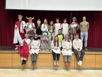 Viel Spaß hatten die 5. Klässler auch in diesem Jahr beim traditionellen Tutorenfasching. Verkleidet u. a. als Harry Potter, Polizist oder Cowboy wurde eifrig getanzt und gefeiert. Die Darbietung des kleinen Hofstaats der FID Donauwörth, der zum 3. Mal zu Gast am Gymnasium Donauwörth war, war eine willkommene Abwechslung und bekam viel Applaus.